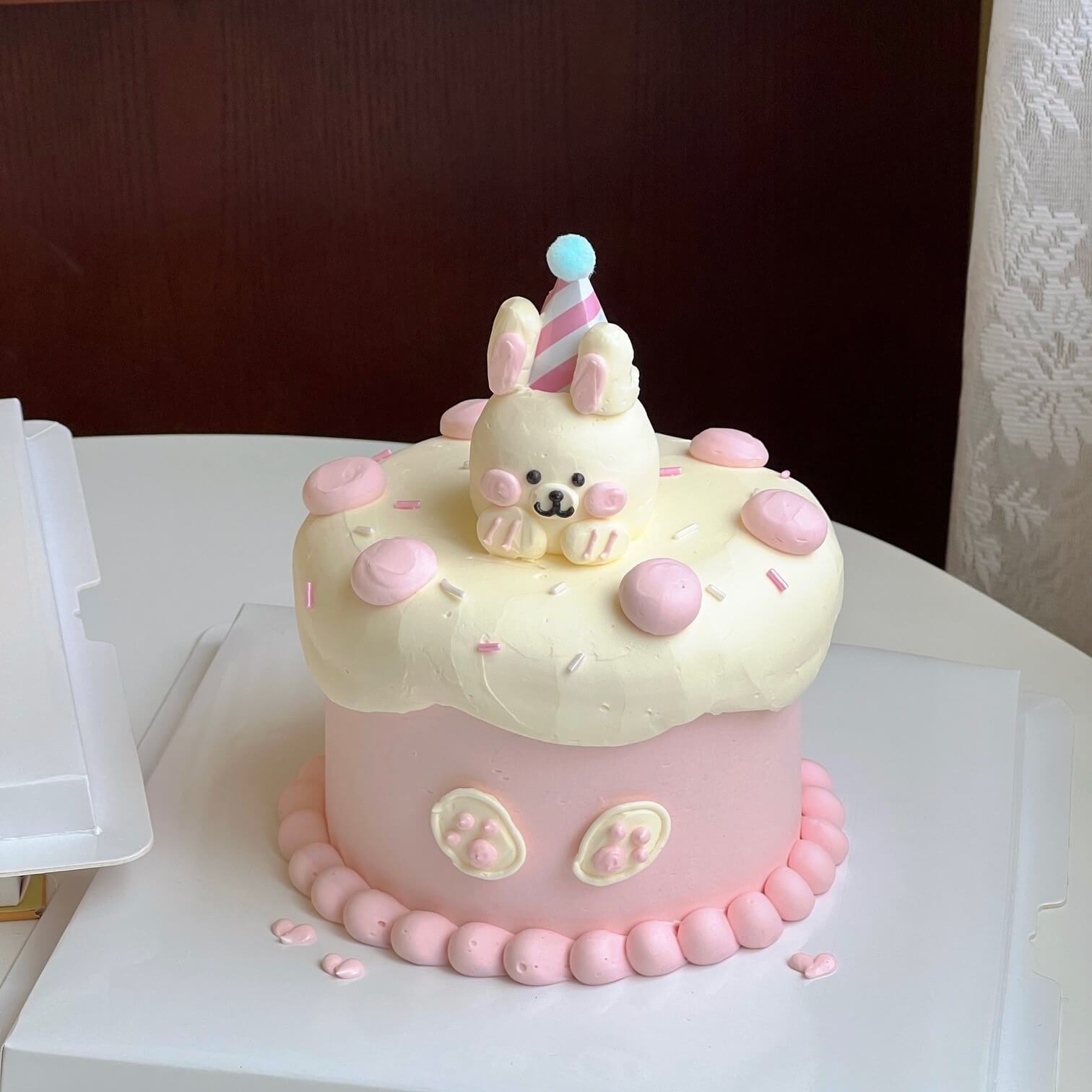 • Cake decoration with non edible birthday hat.