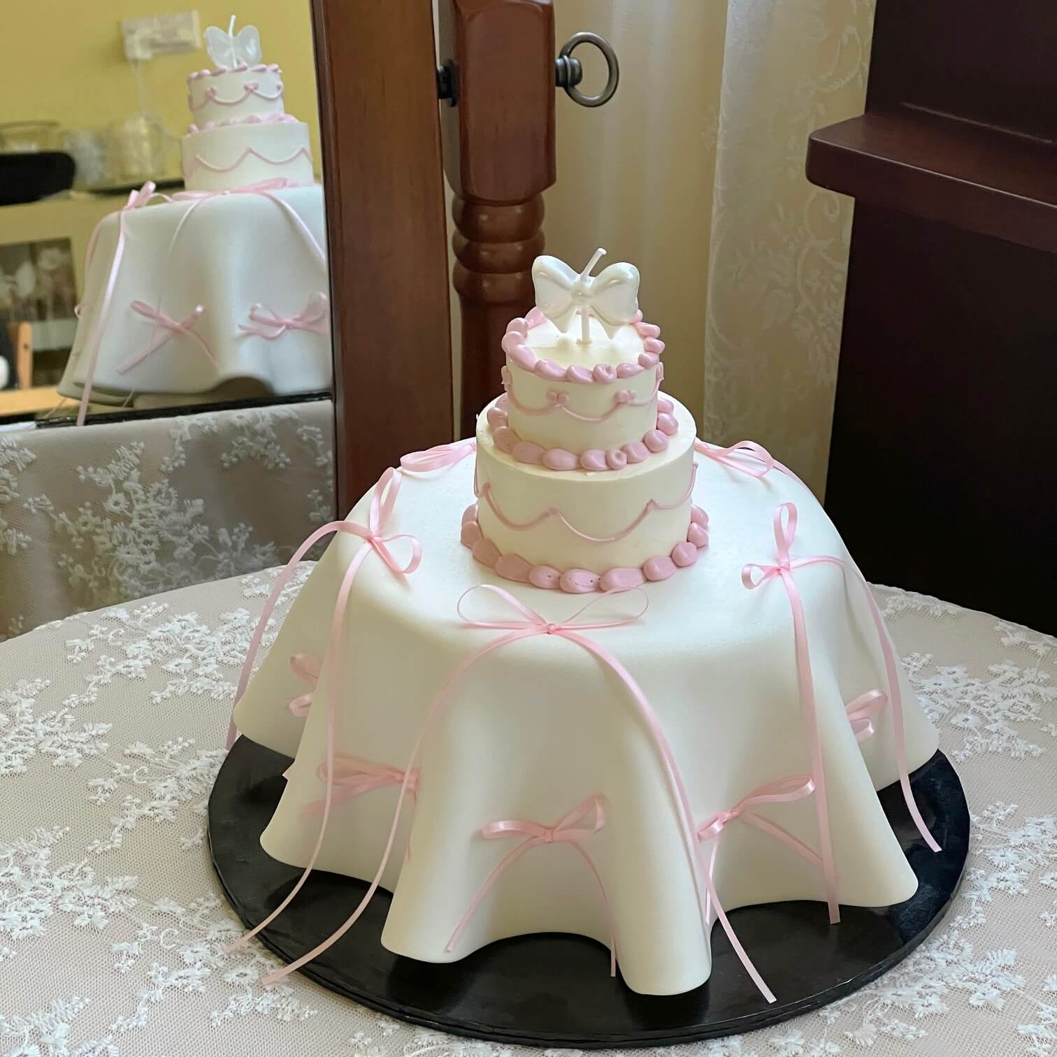 • Cake decorate with non edible ribbon.