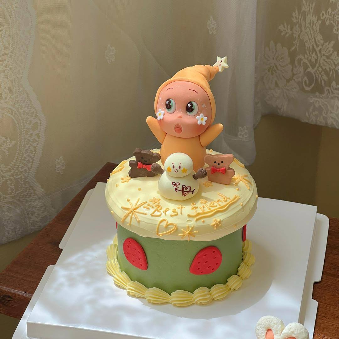 • Cake decoration with fondant decoration. (Please be aware that fondant decorations may contain support sticks or wires)